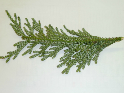 写真の植物は 「翌檜(あすなろ)」と言う木の葉です。能登では「阿天(あ
