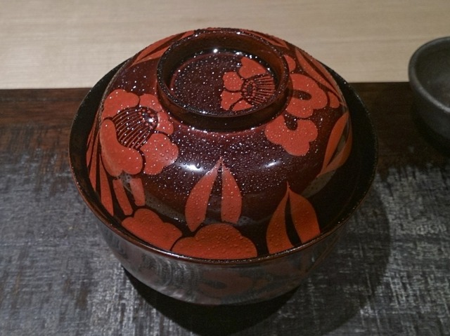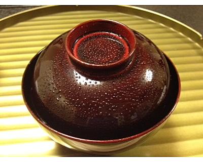 日本料理では 良くお椀や前菜で使う 塗の器に 水玉がついています。