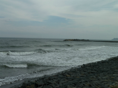 浜です。サーファー達が 大勢波乗りをしていました。楽しい 一日でした!!