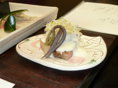 先付は 猪肉です。お椀は 春らしく 土筆が入っています!!