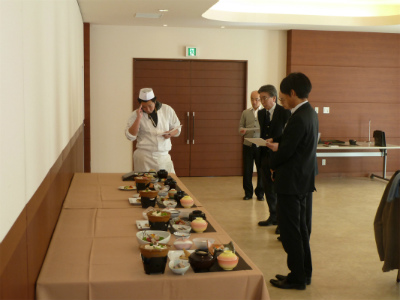 社長 経理 企画室 営業 首脳陣そろい踏みです。調理長 かなり緊張してい