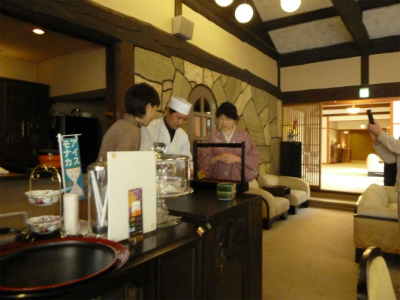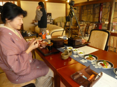落合楼村上 女将さん・小澤調理長・従業員さんが 試食会の準備と打ち合わせ