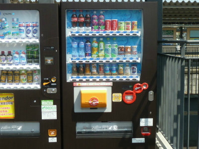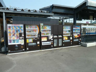 換え向かいます。修善寺駅の自動販売機は 景観を気にしているのか 自動販売機