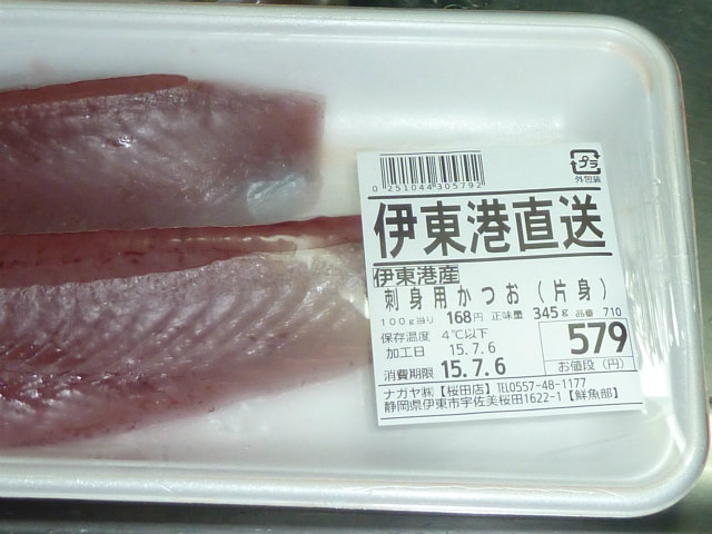 昨夜は 宇佐美のスーパーで 伊東漁港直送の「かつお」「まんぼう」を購入し