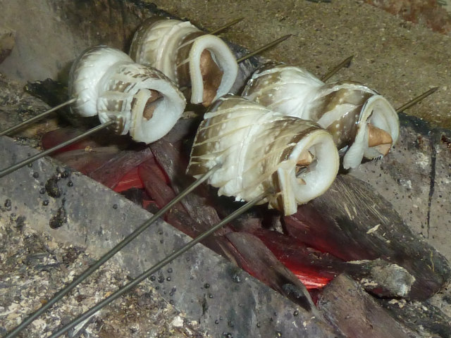 穴子を捌いて 串を打ち 炭で焼き 全て若い子がおこなっていました。今