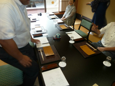 真剣に給仕(接客)されていました。調理長が 経営陣に料理説明をすると 部屋