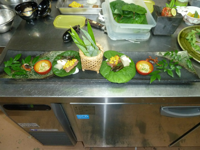 山水さんは 地産地消で献立作りをおこなっているので 造里は海辺の旅館と違