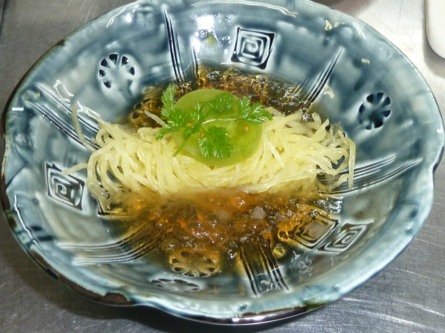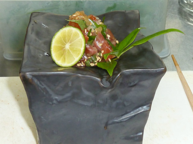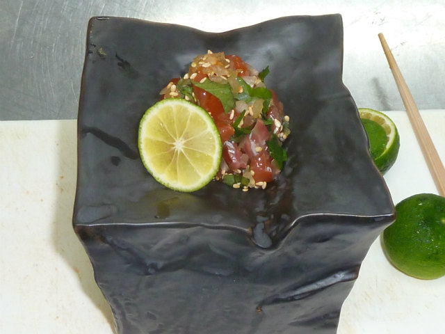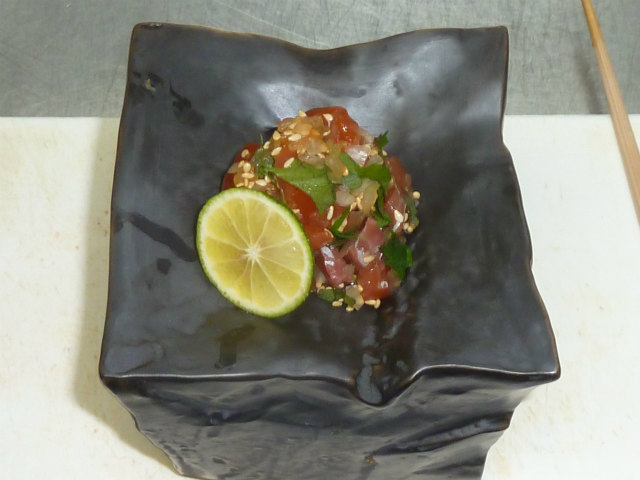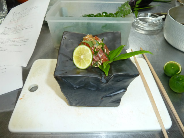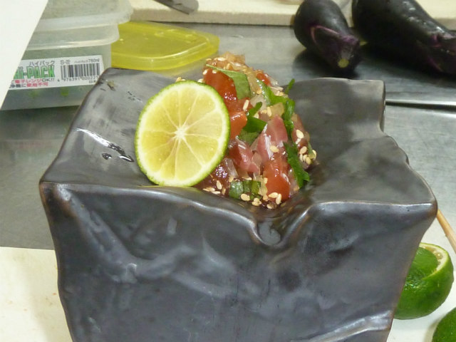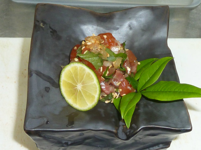 酢橘を絞っていただき 爽やかな味を出します。