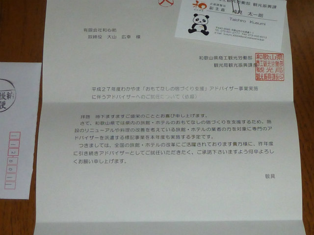 おります。又 和歌山県のお宿様の お力になりたいと思っております。以前 お