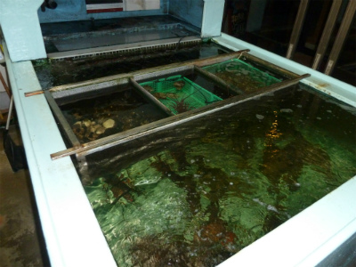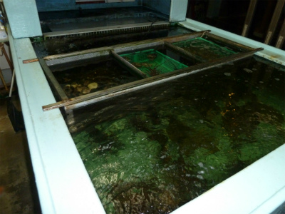 槽には「鰈・平目・あいなめ・伊勢海老・蛤・鮑」等が沢山入っていました。お客