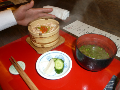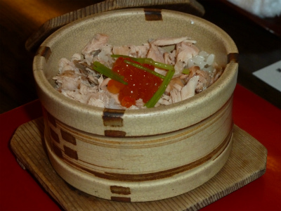 「秋鮭いくら飯蒸し」この時期良く出て来る料理です。いつ食べても美味しいで