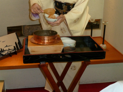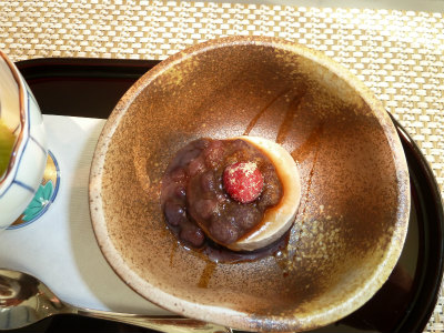 「きな粉ムース黒蜜ソース」最後まで きっちりしていて 花郷調理長の 仕事に