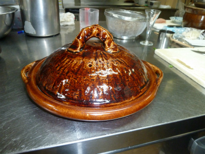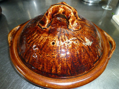 かの有名な「雲井窯」さんの 陶板鍋で 「トマトと和牛のすき焼き」です。
