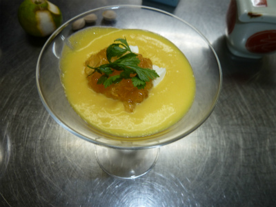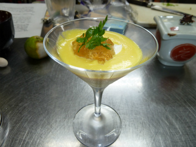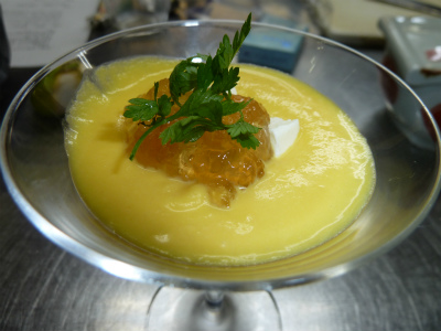 「かぼちゃと玉葱のムース ジュレ」少し甘いですが 野菜を煮詰めたもので