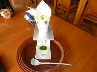「新米ティラミス そば粉クレープ包み 氷餅 濃茶ソース」