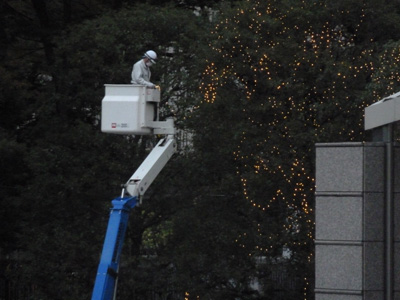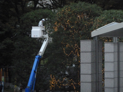 パークハイアット東京玄関前で イルミネーションを飾ってました。もう 今年