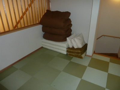 宿泊棟は メゾネットの造りになっていて 定員5名みたいです。部屋には 炊飯