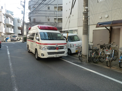 の前に 救急車が止まっており 歯医者嫌いの私は 冷汗ものでした。