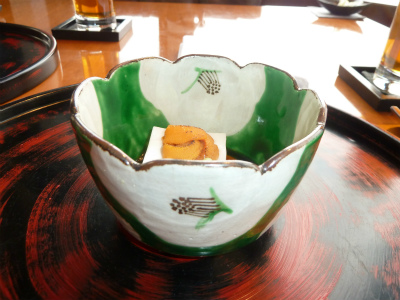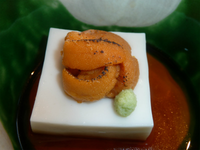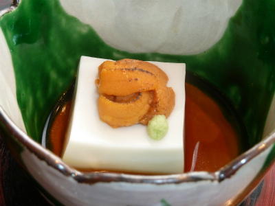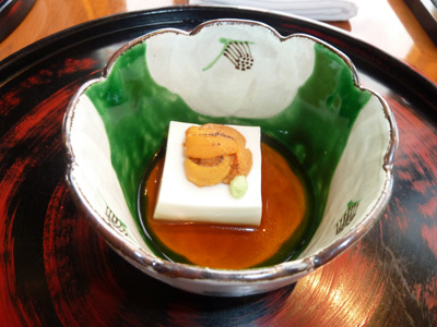 「温かい胡麻豆腐と焼き雲丹」胡麻豆腐がとてもなめらかでした。