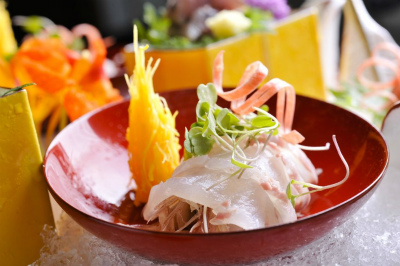 今までの 旅館料理で 刺身と言えば 大根妻が添えてありましたが 和心紡で