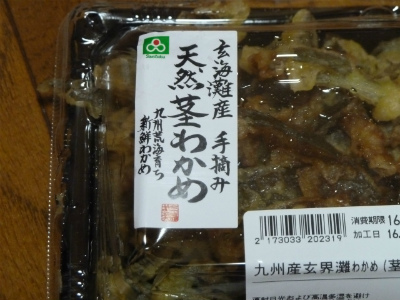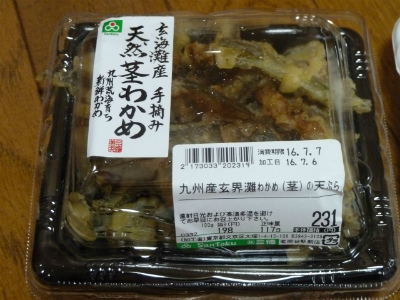 出かけた帰りに スーパーに寄り 夕飯を探しに入りました。「茎わかめの天婦