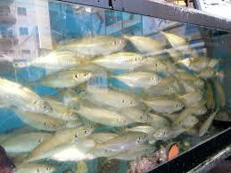 用の丸い水槽です その水槽に入っている魚を見れば 一目瞭然です。定位置網に