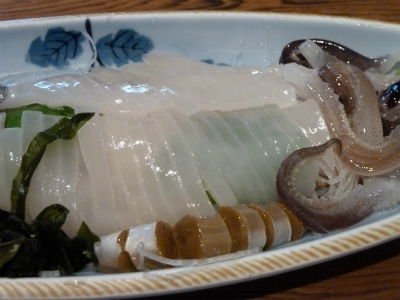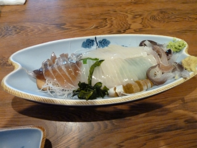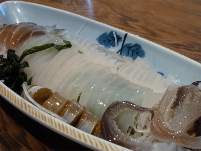 こちらの 私の一押し料理は 生烏賊の姿造りです。身の固い足等は 別途160