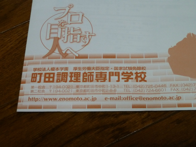 今日は 調理師専門学校へ伺って来ます。すでに 何校か回ってますが 各校就