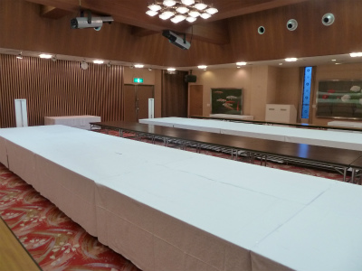 明日 開催される 静岡・神奈川観光料理の祭典技能コンクールの 会場作りの