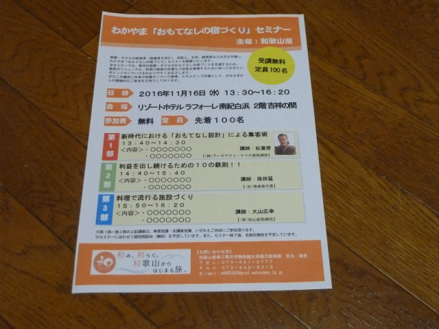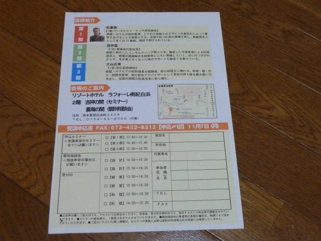 和歌山県白浜「リゾートホテルラフォーレ南紀白浜」で 11月16日(水)AK設計