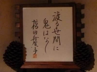 個室に通されて 寄せ書きに気づき 読んでみると橋田寿賀子さんのものでし
