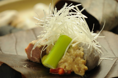「伊豆猪朴葉焼 落合楼謹製胡桃味噌」中伊豆の猟師内田さんが仕留めた伊豆猪