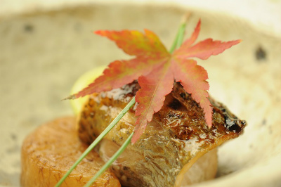 「黒ムツと大根の炭火焼き」小澤料理長オリジナルのタレで炭焼きにしてありま