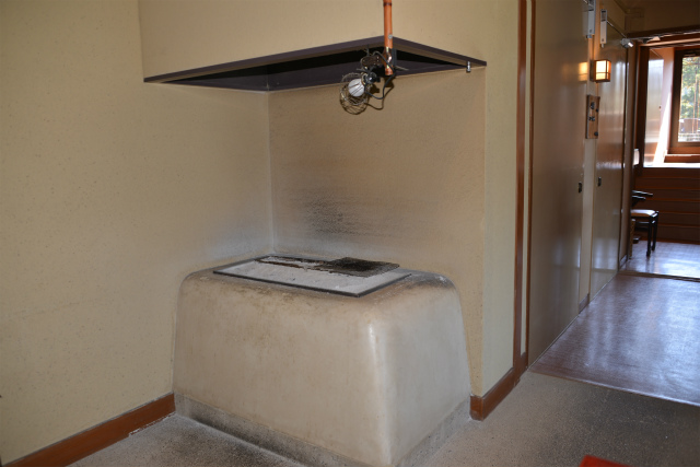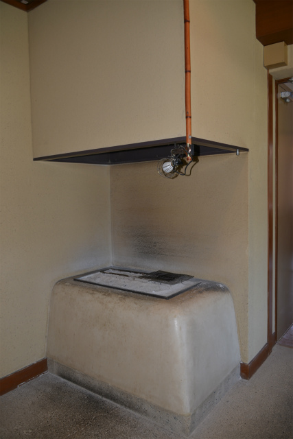 茜彩庵山水さんは メイン料理が「上州牛炭焼き」です。食事処に有る かま