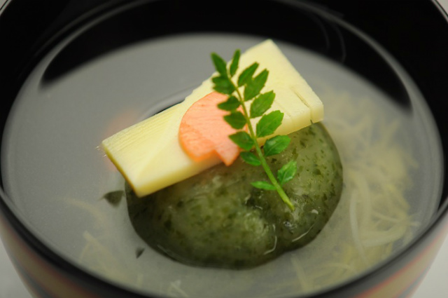 わかめもち 筍 花弁人参 木の芽。