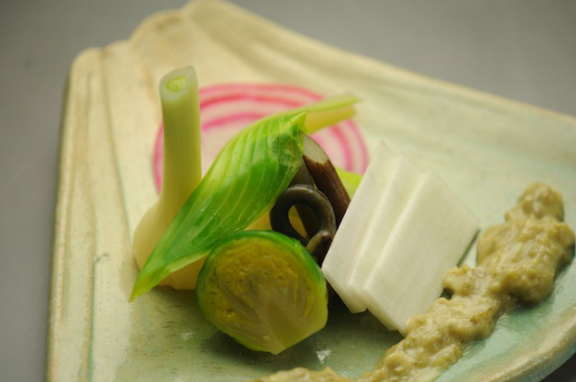 春山菜と蕗酢味噌(独活 うるい 蕨 芽キャベツ 野蒜)です。