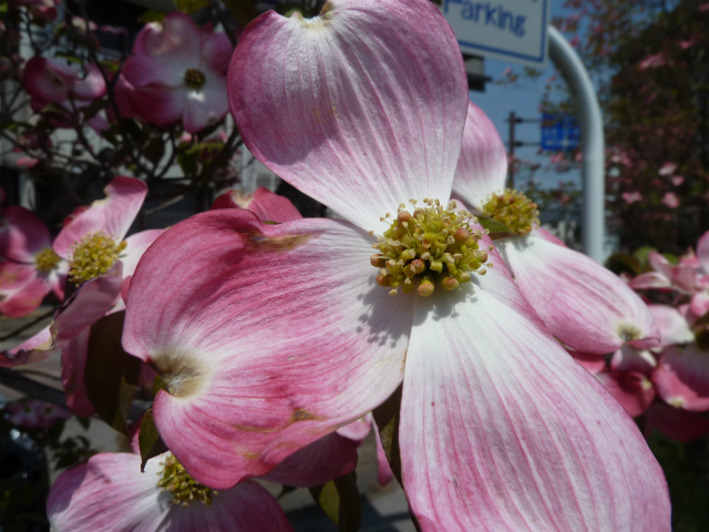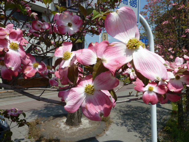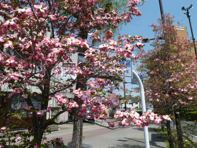 山水さんへ 向かう為 新町駅に降りると駅のロータリーに ハナミズキが 綺