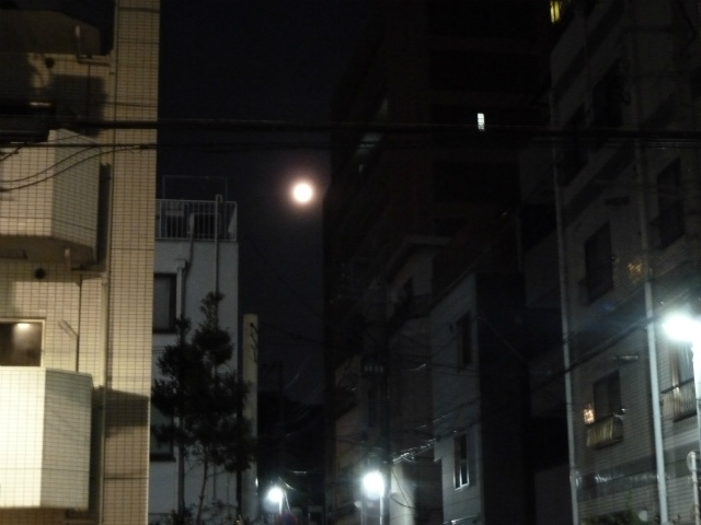 自宅近くで タクシーを降り 久しぶりに 東京の夜空を見たら 満月でした。