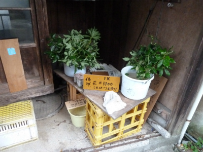 アパートの近くの裏路地に 榊の無人販売所が有ります。近くの人はみんな利用