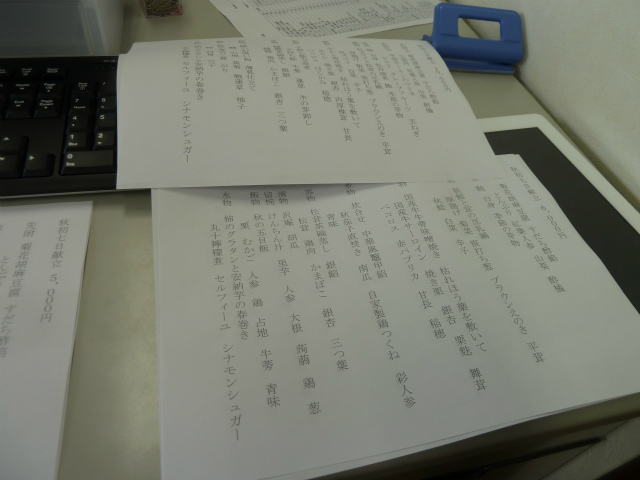 昨日の24日 お得意様の秋料理試食会に参加して来ました。