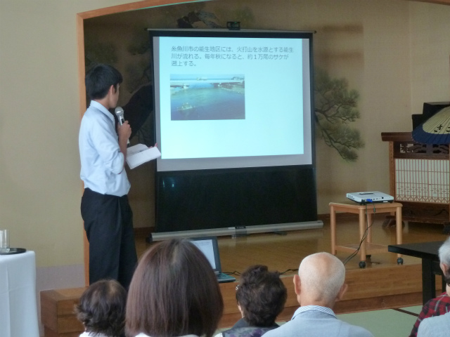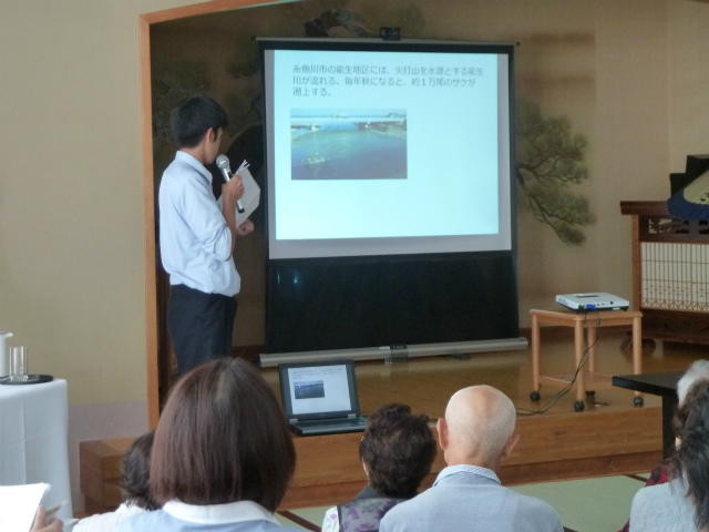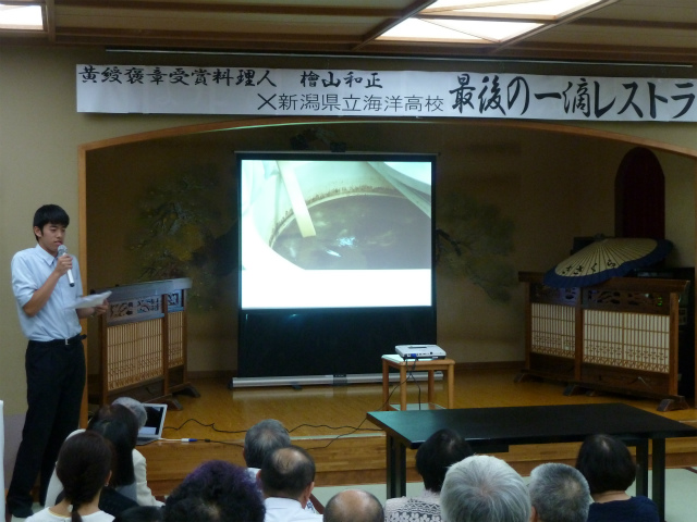 プロジェクターを使用して 海洋高校の生徒さんが 製造工程を 詳しく説明