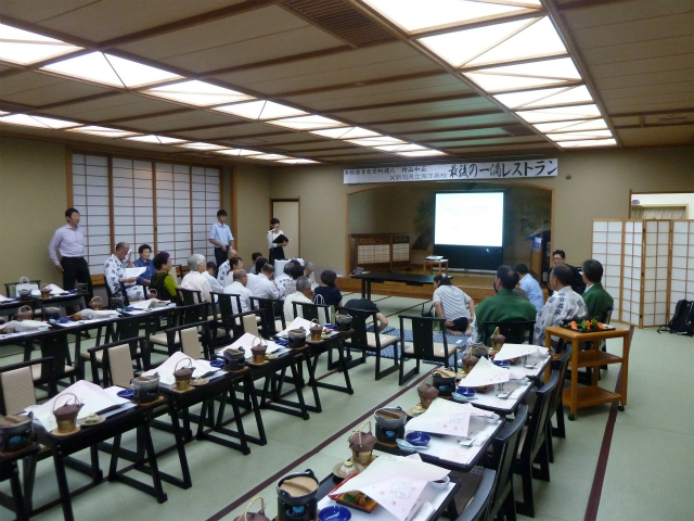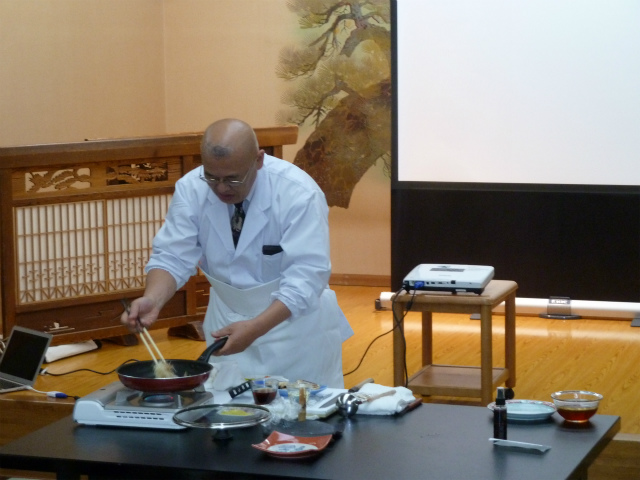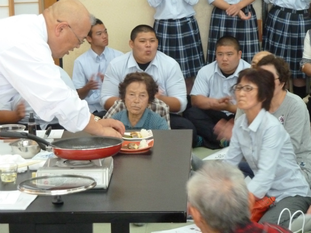 料理の実演! 皆さん熱心に聞かれていました。又 檜山会長も 慣れているので