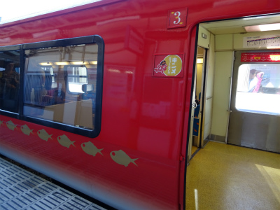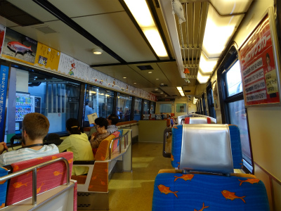 ていました。電車のすべてが 金目色に塗られていて 車内には金目の説明が書か