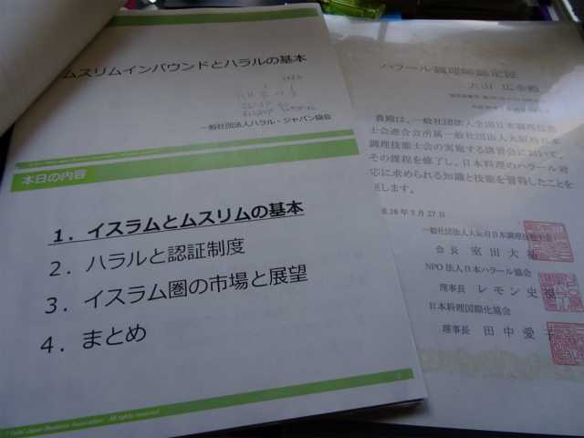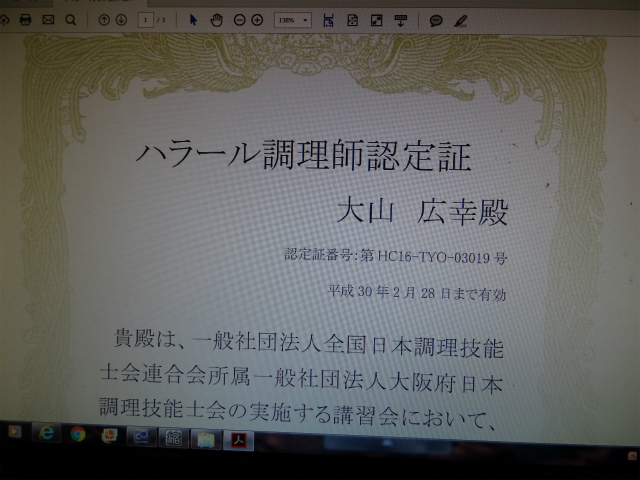 一昨年 私は「ハラール調理師認定書」と言う資格を取得しました。理由は 関