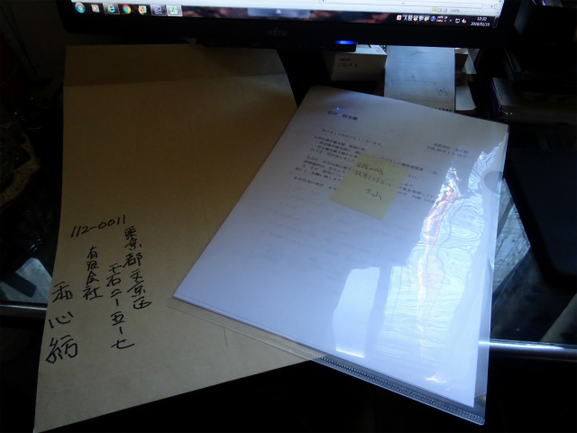 帰宅後 簡単に企画書と見積書を作成して 郵便局より 速達で送りました。