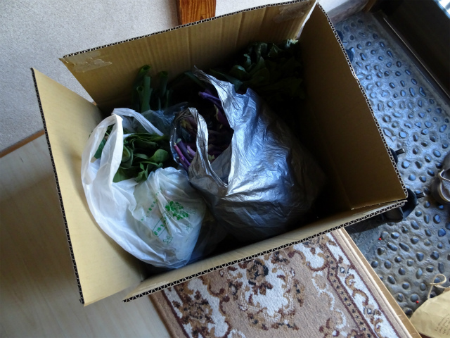 白菜 大根 春菊 長葱 紫菜花 菜花 里芋その他 10種類くらいの野菜が