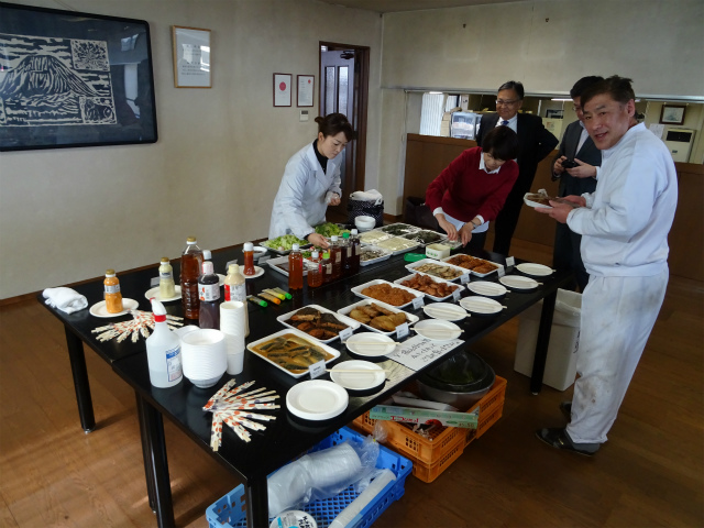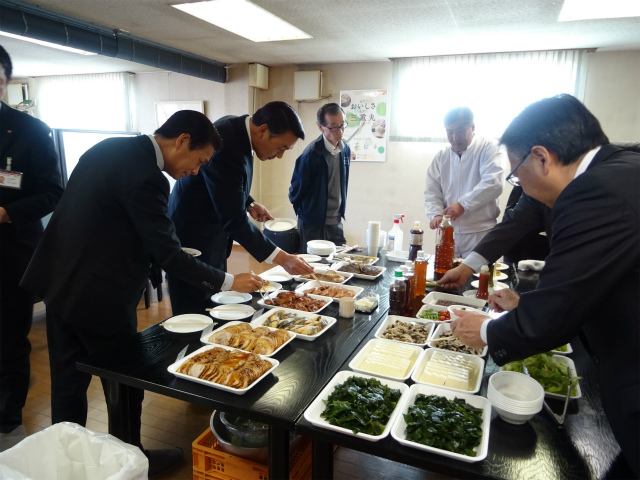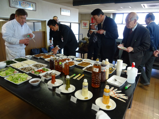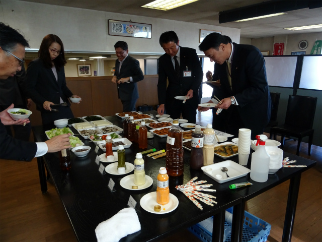 試食会参加者は 渡邊商事経営陣様 金融関係者様 従業員の方々です。試食