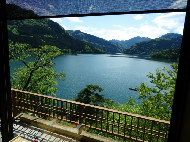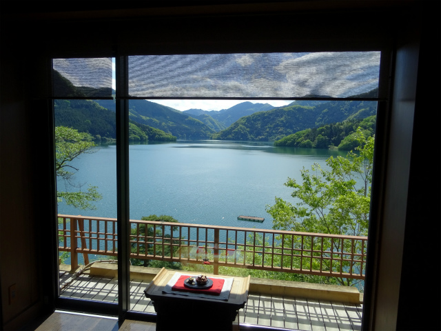 到着後 こちらのスペースに通されて 景色を見ながら 女将さん特製の御茶菓子
