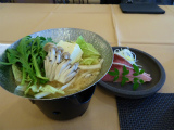 鍋は 「鰤しゃぶ味噌仕立て」です。この料理は 最初に 鍋だけを置いておき