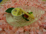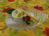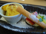 冬のデザートは 「フルーツグラタン 林檎のシナモン煮 白胡麻ソースかけ」